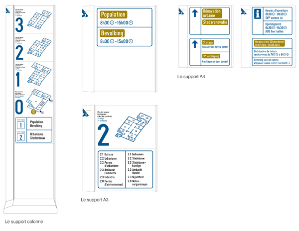 Processus de conception et d’amélioration de la signalétique intérieure et extérieure des bâtiments communaux à Anderlecht. Celui-ci a impliqué une participation dynamique et positive des acteurs concernés.