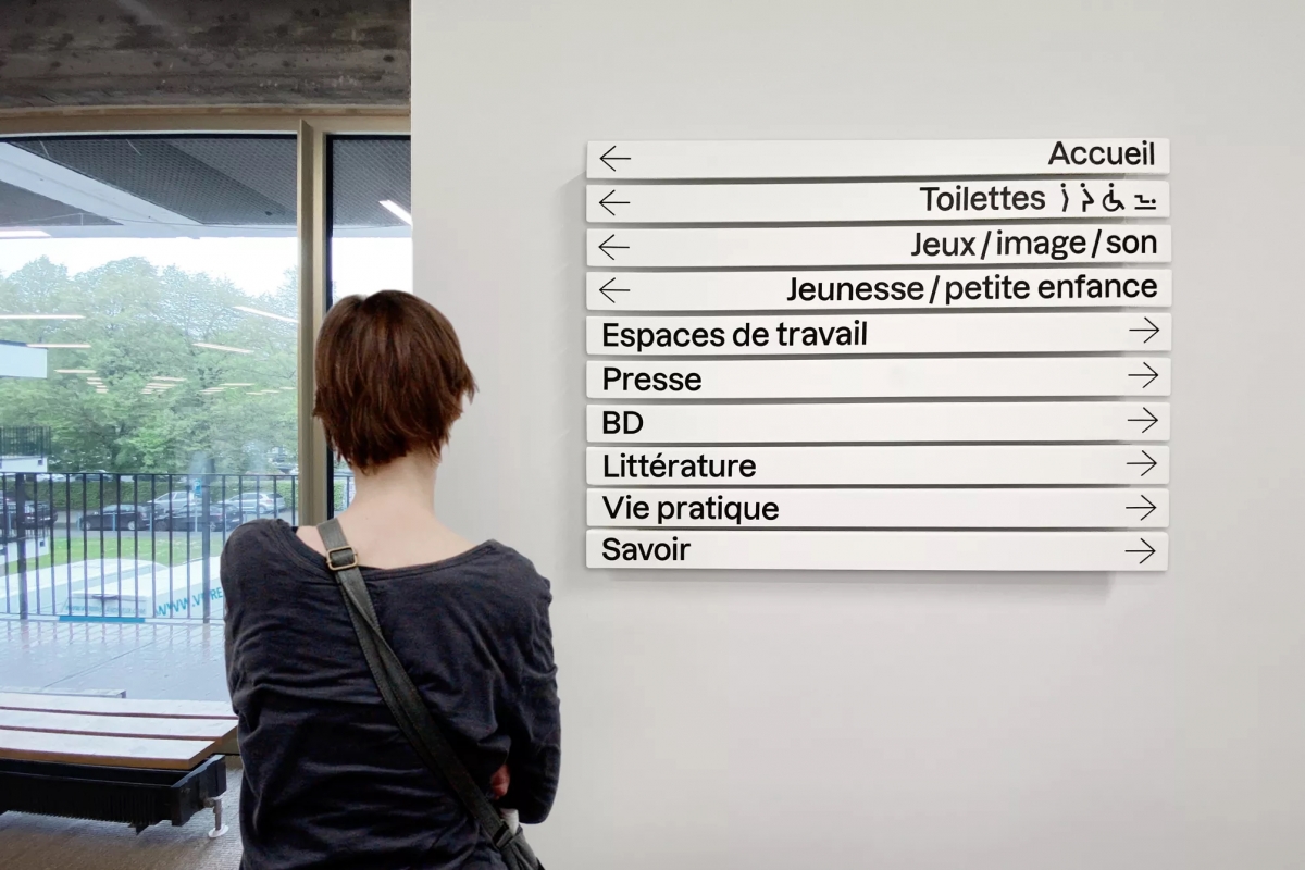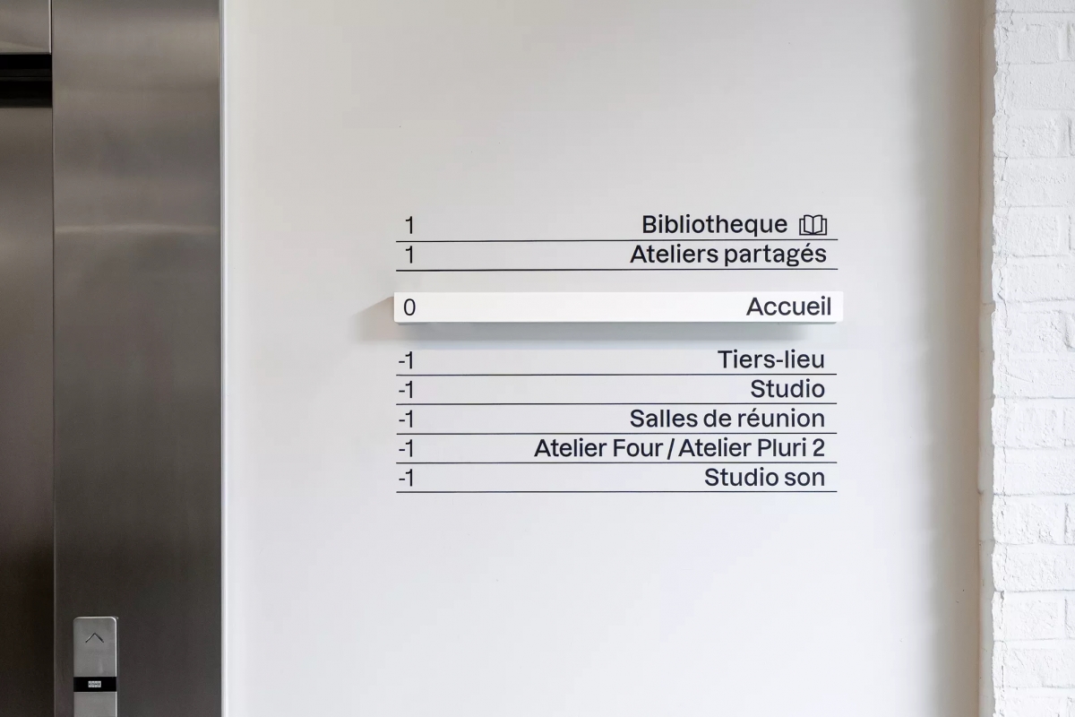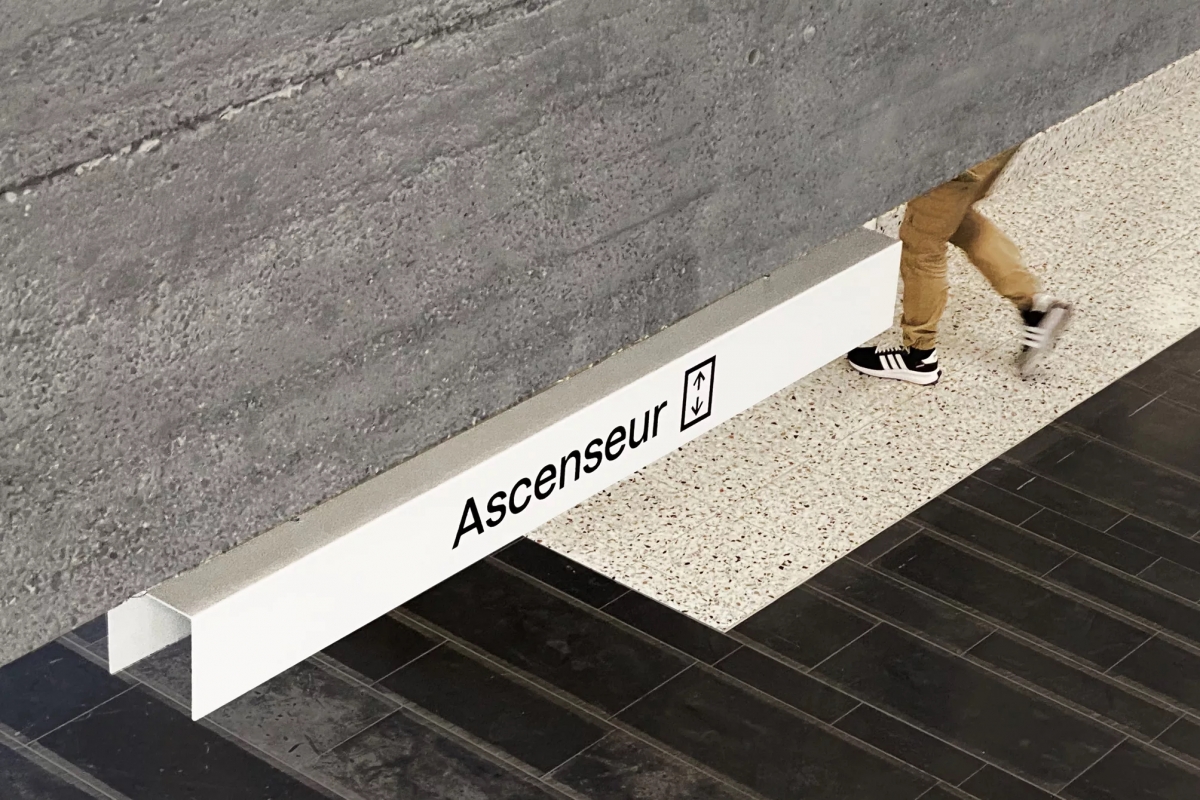 Ce projet de signalétique, réalisé en collaboration avec le studio Otamendi pour le graphisme, s’intègre pleinement à l’architecture de la Maison de la Culture.